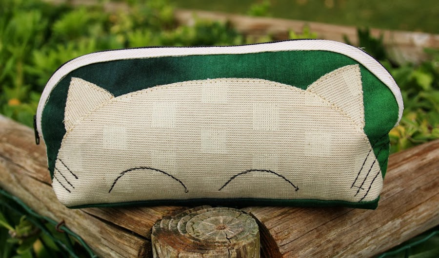 Elegí una tela verde en degradado que es un poco oscurita para que no se manche mucho, y para adornarlo le puse por un lado un gatito en color crudo dormidito y por la parte de atrás la cola del minino, causa mucha ternura y es muy simpático.