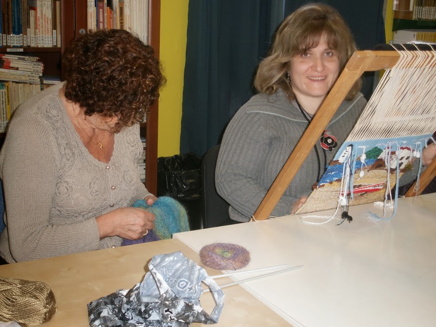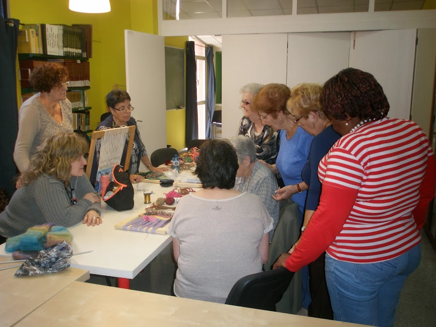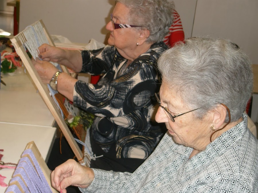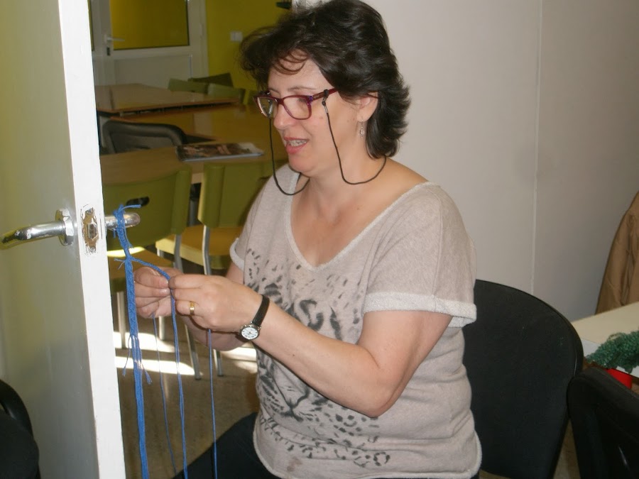 Aquí nos está enseñando macramé, pues sabe mucho mas que yo.