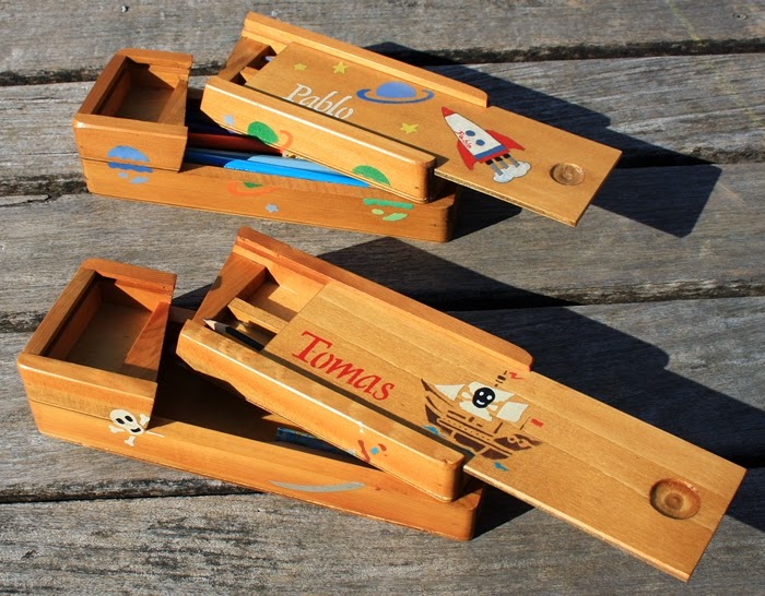 Los plumieres están totalmente personalizados para sus dueños, el de Pablo de cohetes, planetas, estrellas? vamos del espacio, ya que le apasiona todo lo relacionado con ese tema.