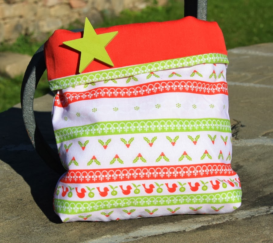Hoy, como aquel que dice, en vísperas de Navidad os enseño un saquito hecho con una tela muy navideña y por la otra cara en rojo. Como adorno una estrella pintada a mano. La utilidad de este saco: la que vosotros queráis, poner dulces propios de estos días, poner algún regalo que queráis hacer o cualquier otra cosa que se os ocurra.