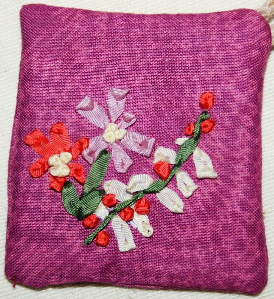 Aunque es una labor muy chiquitita, es significativa porque esta bordada con cintas de nylon, una técnica nueva que he aprendido y que os aseguro que no me resulta nada sencilla, pero le da un toque a la pieza que la convierte en importante para mí.