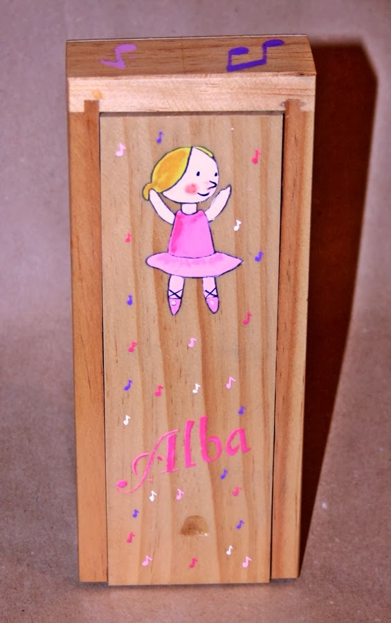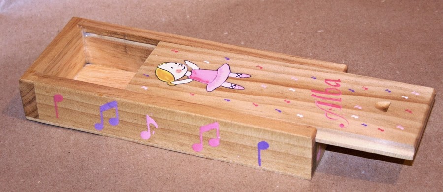 Hoy os vuelvo a mostrar otro plumier de los que he hecho últimamente. Este que os enseño es el de Alba, una niña que le gustan el ballet, las sevillanas y en definitiva el baile y la música. Esa afición había que plasmarla en un plumier así que: ?manos a la obra?.