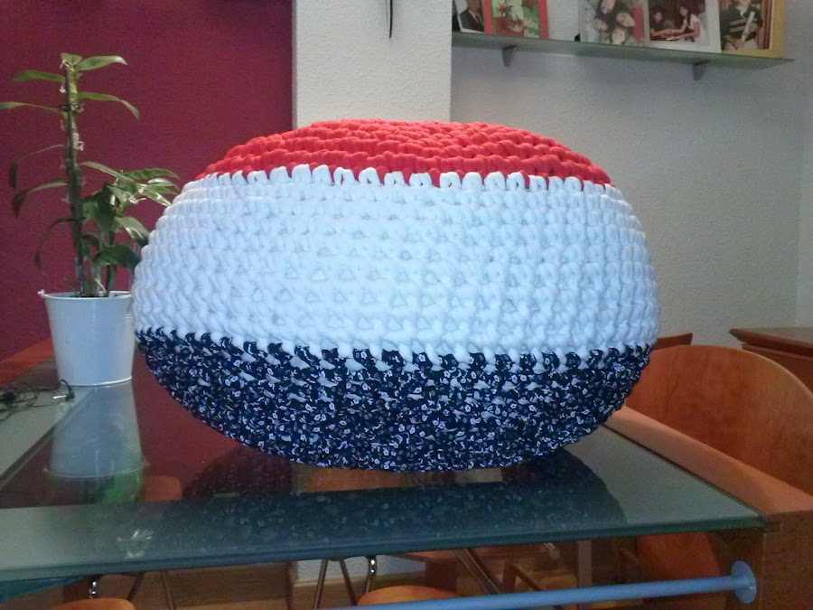 Para hacer este puff de tres colores necesitamos 3 ovillos de unos 800 grs. aproximadamente..