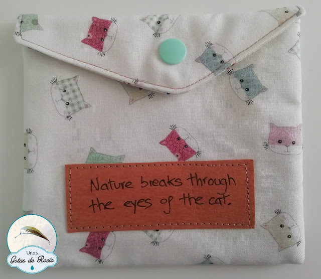 Hubo una temporada en que hacía muchas bolsitas para llevar las compresas, yo las llamaba neceser de camuflaje, estos días he hecho un par de ellas. Las he personalizado con una cita, escrita sobre kraft tex y cosida luego a la tela, que pienso a la destinataria le va a gustar. Es la misma cita en dos idiomas, en inglés y en gaélico. No me gusta escribir en inglés de manera gratuita. Si os fijáis, en mis bordados, cuando añado algún texto, palabra o cita, nunca va en inglés, no le encuentro razón de ser. Aunque lo entienda, pues a veces son palabras muy sencillas que con una mínima base del idioma, ya se entiende, pero no lo encuentro necesario teniendo un idioma que además de entenderlo lo siento. Si se trata de un objeto que compro con un texto en inglés, pues me adapto sin problema, pero con la libertad de poner lo que yo quiera en algún objeto que yo cosa, pues no, nunca lo pongo en inglés. Una manía como otra cualquiera. Pero en esta ocasión hay razones poderosas para usar idiomas diferentes. Son dos bolsitas que he hecho para un familiar que ejerce como maestra de inglés y que es apasionada de Irlanda, así que no dudé en ponerle una cita en inglés y en gaélico.
