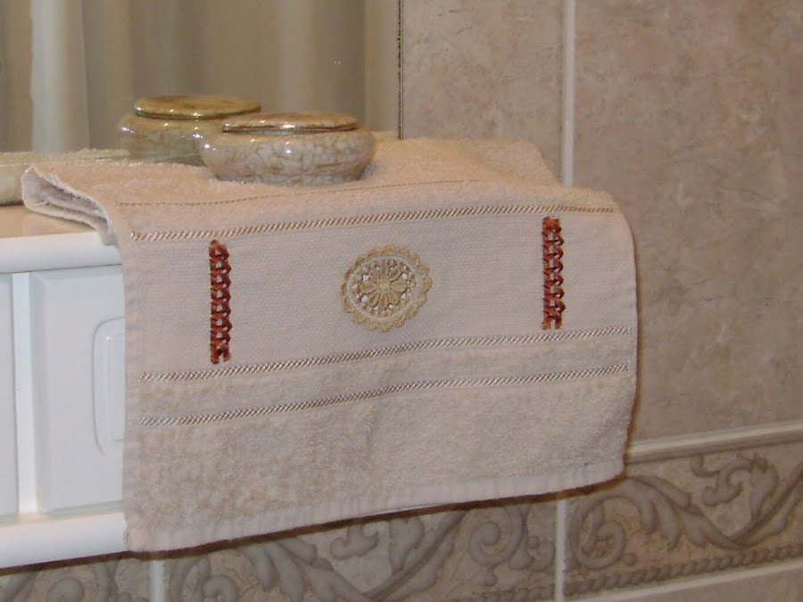 Unos simples detalles para cambiarles la cara a las toallas ! A los costados borde una guarda con cintas de raso.