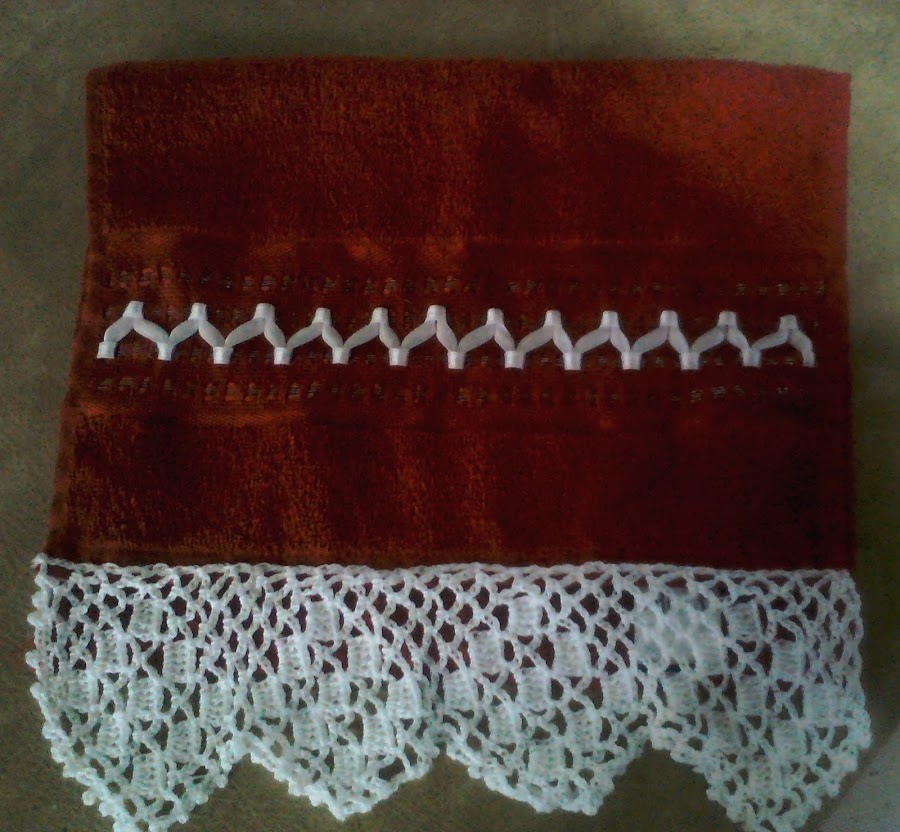 TOALLA CON PUNTILLA CROCHET Y BORDADO DE CINTAS.