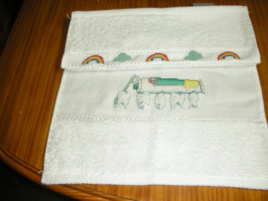 Hace tiempo tanto que ya se me había olvidadido bordé esta toalla para mi nieto,