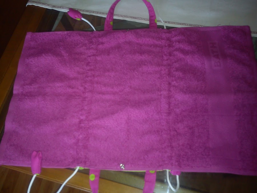 Y esta parte es por el derecho de la toalla. Si os fijáis, le he puesto un cierre en el centro, así una vez doblada se pueden meter cositas dentro.