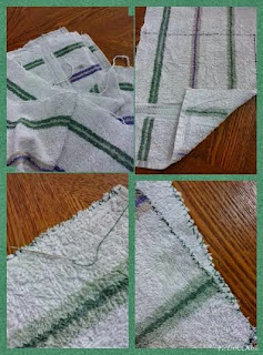 Me encontrado esta toalla ya lista para desechar y le he cortado un pedazo de forma cuadrada de tamaño 40 x 40 centímetros y así convertirla en el producto final que es TOALLA PARA COCINA, con la principal función de adornar y/o embellecer nuestra cocina.