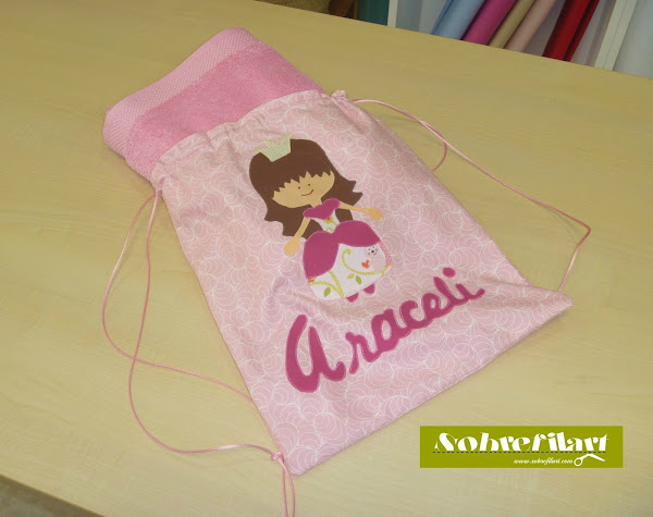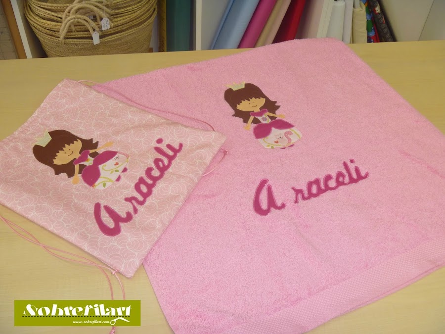 Como siempre ambas cosas se pueden personalizar con el nombre y el dibujo que queráis, además de poder elegir el color de la toalla y el tamaño. Si te gusta y tú también quieres tú conjunto escríbeme a sobrefilart@gmail.com