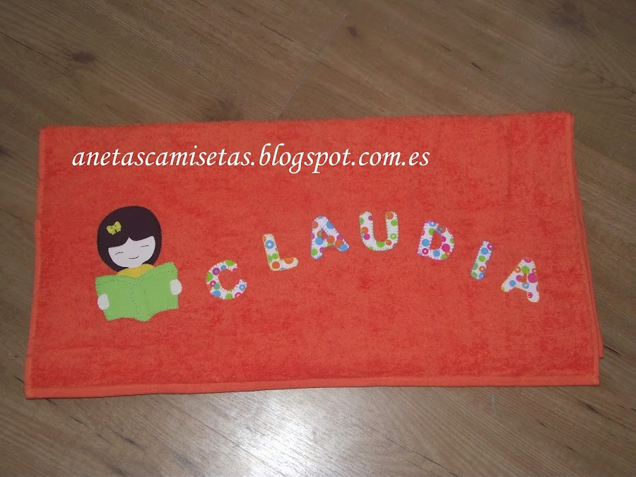 Esta toalla es para una pequeña que ha hecho su Primera Comunión. A Claudia le ha gustado mucho, es una muñeca leyendo porque a ella le encantan los libros y se pasa parte del dia leyendo.