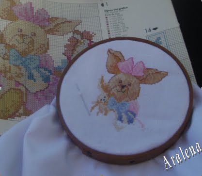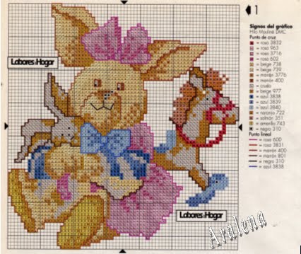 Aquí les pongo el diagrama de la revista con la coneja. Como verán , no he puesto en el bordado , el pequeño caballo de juguete