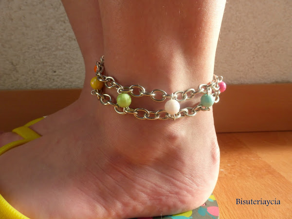 Ya tenemos una tobillera de alegres colores para disfrutar del verano. Espero que os haya gustado y que os animéis a hacerla.