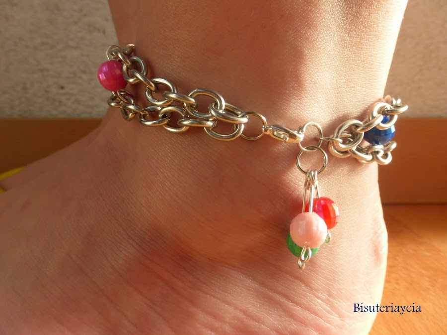 En este caso como yo no sabía la medida exacta del tobillo coloque tres anillas y unas bolitas en el extremo para darle un mejor acabado.
