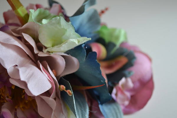 Comencé a comprar distintas flores de colores que quedasen bien con mi vestido. El vestido es azul marino y está adornado con puntillas verdes y una tela estampada de varios colores, así que era muy sencillo encontrar flores que quedasen bien.