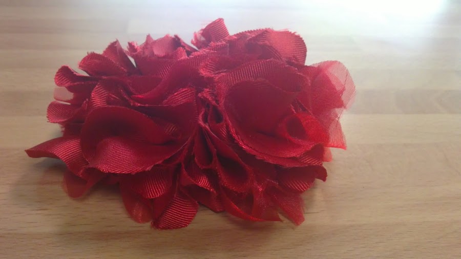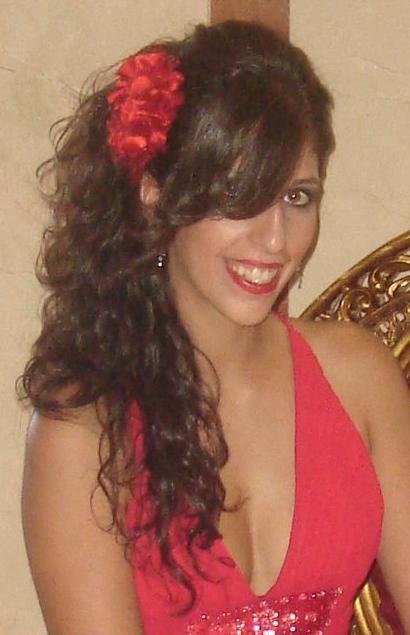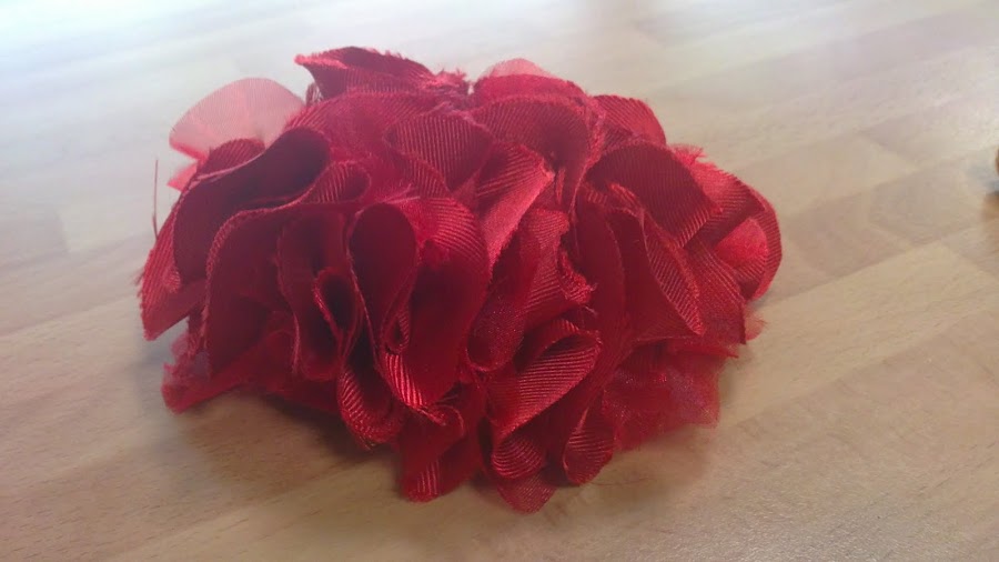 El rojo se lo pusieron a un lado del recojido, que con el pelo rizado quedaba precioso.