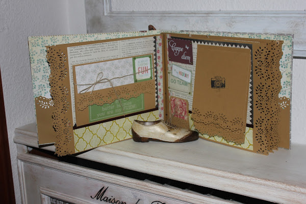 Hace unos días B. contactó conmigo. Su mejor amiga se casaba y queria regalarle un álbum en el que colocaría fotos de ambas desde pequeñas, cuando comenzó su amistad. Al final concretamos encuadernación japonesa y estructura adecuada a las fotos que quería colocar. Y así quedó.