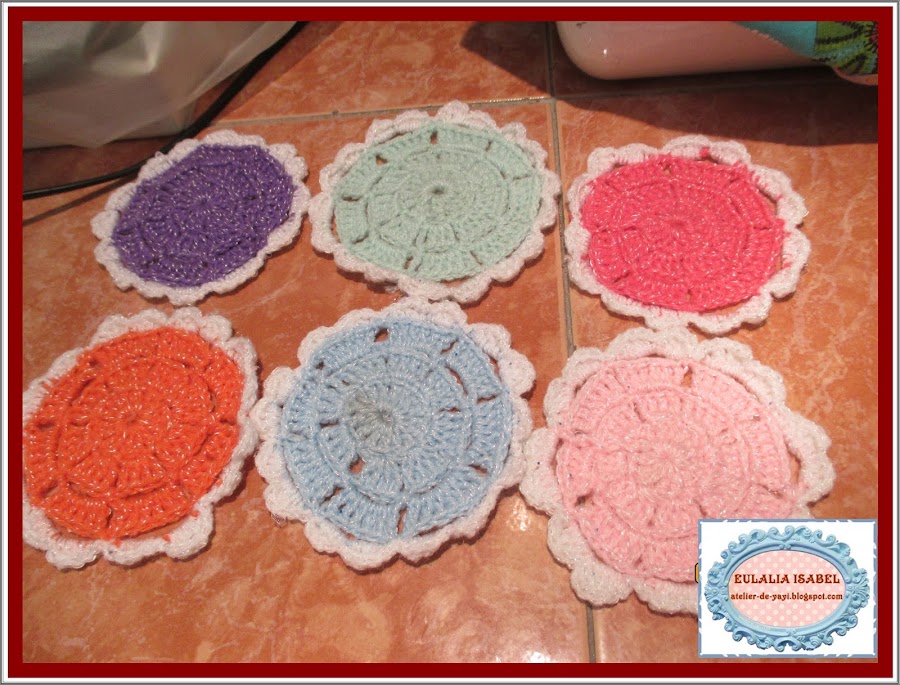 POSAVASOS TEJIDOS EN HILO DE VARIOS COLORES.