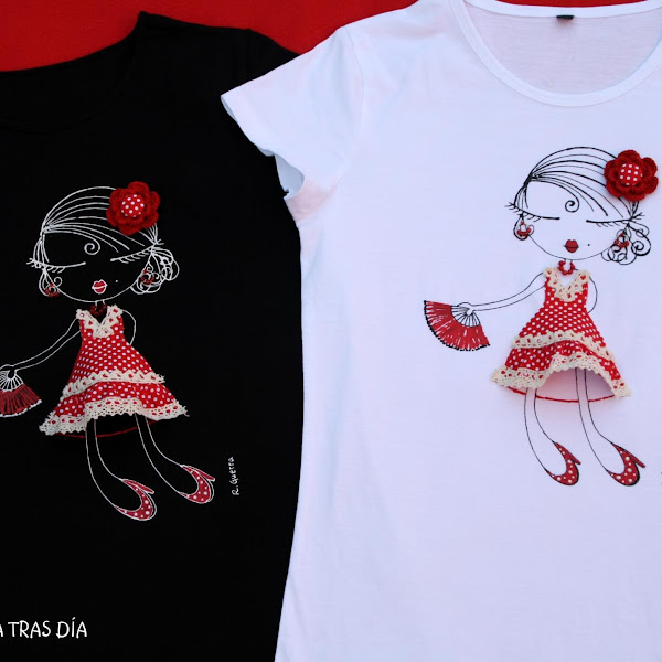 Pues, aún a riesgo de hacerme pesada, hoy traigo dos nuevas camisetas que me han encargado de unas nuevas Ro-ros flamencas. Si, ya lo se, estoy un poco monotemática, pero... ¿qué le hago yo, si es lo único que me piden últimamente?