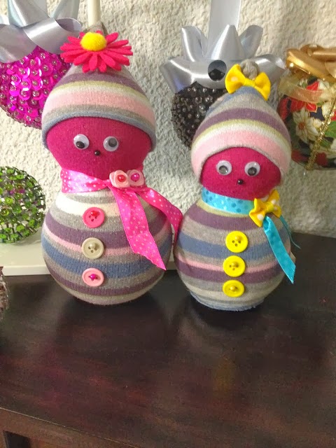 Desde Manualizando, nos invitan a preparar estos muñecos de nieve reciclando calcetines, a que son preciosos?