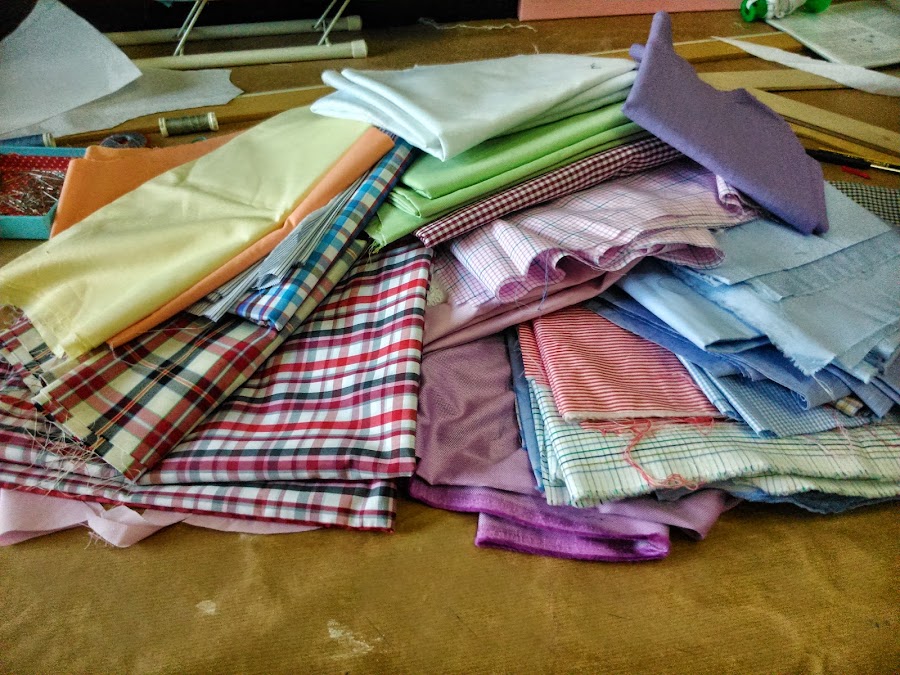 ..............cuando te traen una cantidad de retales para hacer vestidos te quedas ....qué no sabes por dónde empezar a cortar...y ahora qué hago ???...muchos ni siquiera te gustan ...pero no te queda otra qué echar mano de tu imaginación...y empezar a cortar ...!!!!
