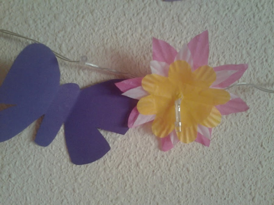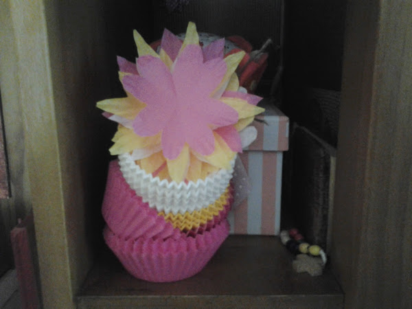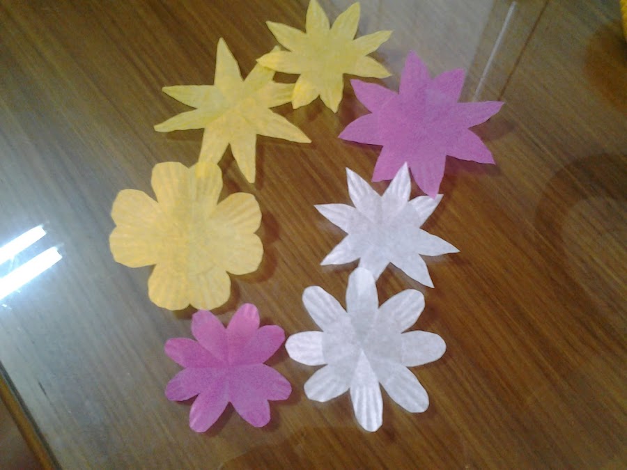 Para esta otra manualidad compro cupcake, en varios colores, los recortó en forma de flor y así le quedo.