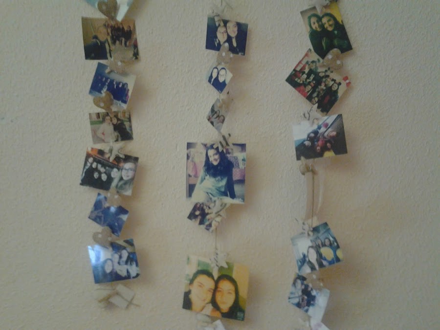 Y cuando subí a su habitación esto fue lo que me enseñó, con unas pinzas pequeñas que le dejé, fue colgando fotos con sus amigas.