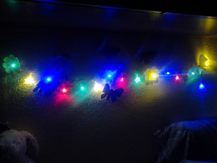 Y con luces de colores hizo esta guirnalda para su habitación.