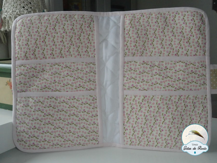 Para dos hermanas también fue este otro portadocumentos. La solución fue idéntica, los tonos similares, las telas diferentes.