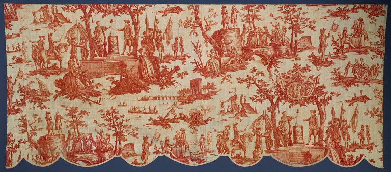 Si hablamos de Toile de Jouy hablamos de telas con motivos grandes que generalmente representan escenas pictóricas en un solo color y sobre fondo claro. Pues bien, Toiles de Jouy es la denominación de un tipo de tejidos que se fabricaron por primera vez en la ciudad francesa de Jouy-en-Josas, cerca de Versalles, en 1760. Los diseños originales eran monocromáticos, debido a los métodos de impresión en tela empleados, rojos, negros o azules sobre fondo blanco o crema, y se imprimían principalmente en algodón. Los motivos de Toile de Jouy solían ser escenas cotidianas, reuniones de caza, escenas pastorales, impresiones idílicas de la campiña francesa, mitología clásica, o también motivos orientales, muy populares entre la aristocracia de la época. Los artistas pintaban cada escena como si se tratara de un cuadro, y siempre tenían una temática o una narrativa. En la Francia del XVIII el algodón era muy preciado y caro, por lo que estas telas eran un alarde de riqueza de los más afortunados. Entre ellos Maria Antonieta, que los empleaba con profusión en los interiores de sus dependencias. El vínculo de la fábrica con la realeza francesa se materializó en 1783 cuando fue nombrada fábrica Real. La fábrica desapareció pero los diseños continuaron y se hicieron muy populares, tanto en Europa como en Estados Unidos.
