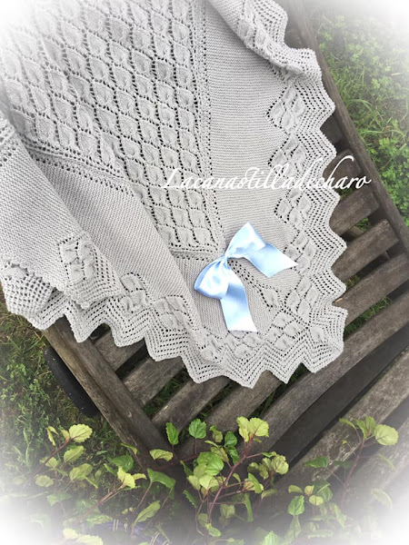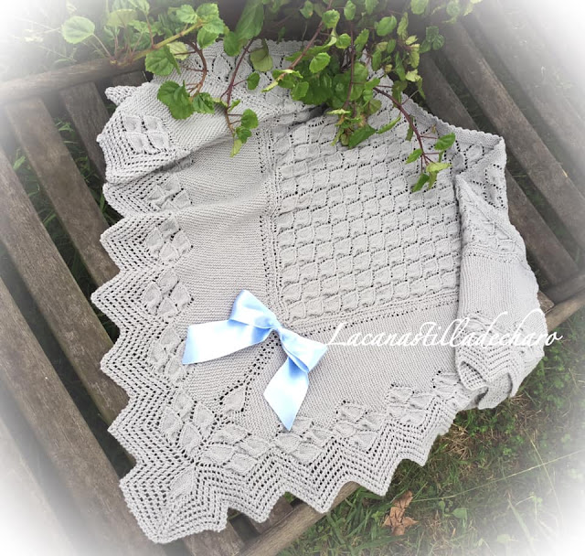 Esta vez la toquilla de bebe Lena tejida con lana de bebe suavel gris.