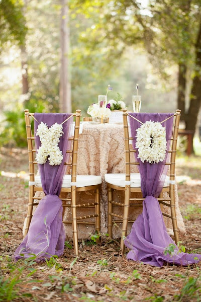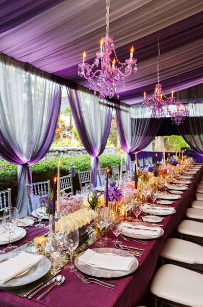 Una boda al aire libre o en una terraza? Observen la elegancia de este espacio, amén de las tonalidades en púrpura y lavanda!!