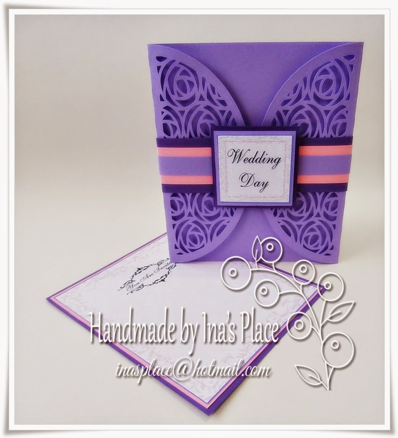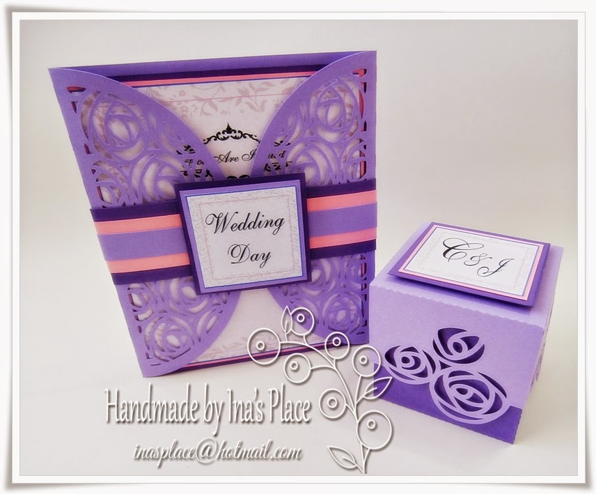 Hoy continúo con las invitaciones para Bodas y la de es tan sublime como la publicada en el post anterior(lunes). Los tonos escogidos fueron el Lila y el Violeta, dos colores de la misma gama pero en diferentes tonalidades y el resultado es el siguiente: