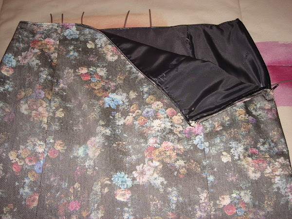 La falda la he forrado con tela de forro de seda de color gris marengo.