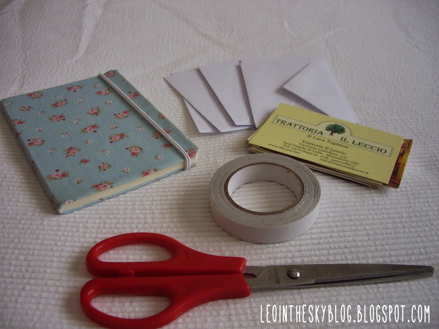 Es muy fácil, ya veréis que es una "tontuna", sólo se necesita un sobre de un tamaño un poco menor al de la libreta o libro que vayamos a utilizar, cinta adhesiva de doble cara y tijeras