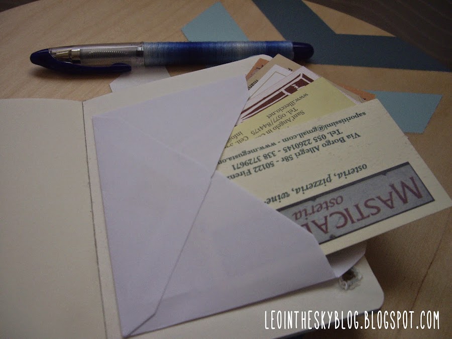 En esta ocasión quería hacer algo para guardar y tener ordenadas las tarjetas de los restaurantes donde estuvimos en nuestro reciente viaje a la Toscana, y se me ocurrió que estaría bien tenerlas guardadas en la misma libreta que hice para apuntar los itinerarios del viaje, aquí os cuento cómo la tuneé. Fue entonces cuando me acordé de una idea que vi hace mucho tiempo en la web de Martha Stewart, y que ya había aplicado en mi casa, pero para las recetas de cocina.