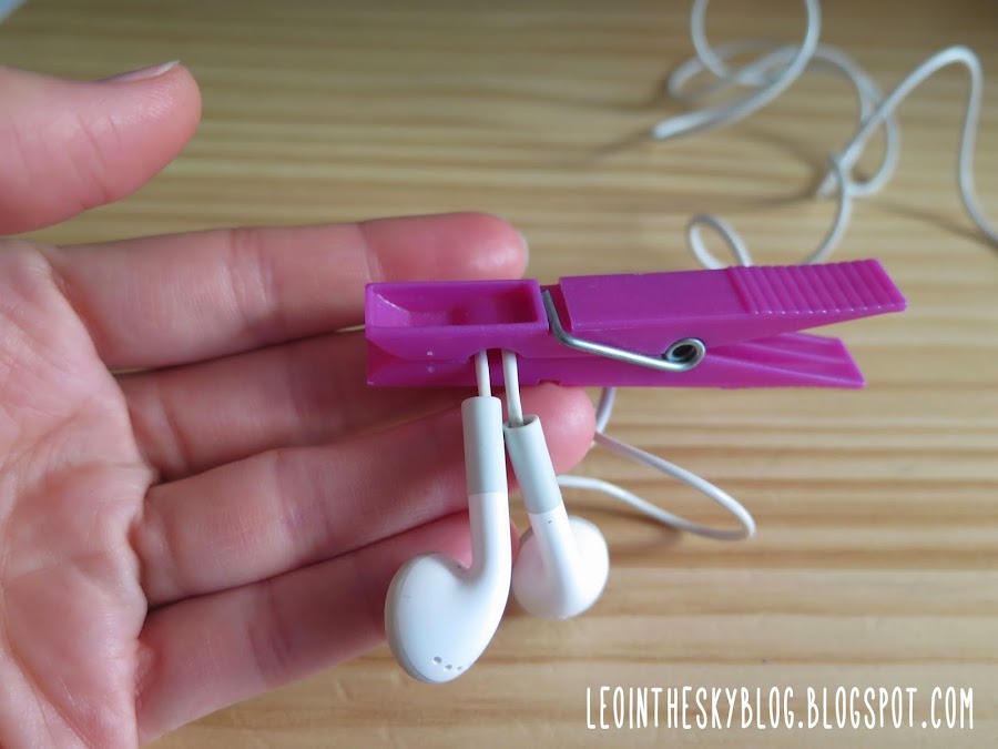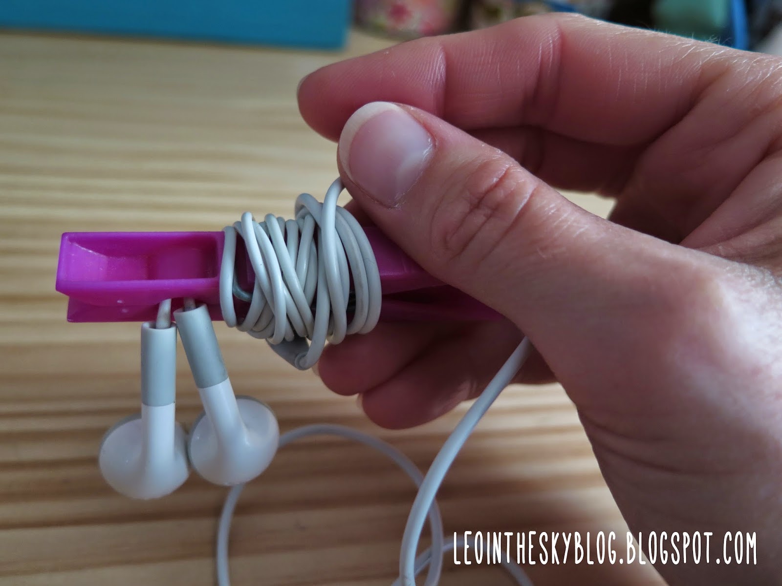 Algo muy simple: utilizar una pinza de la ropa para enrollar el cable de los auriculares y tenerlo de esta forma siempre ordenado, sin nudos y lo más importante listo para usar en un momento. ¿Cómo no se me ha ocurrido antes? ¡Con la de nudos que he tenido que quitar cada vez que los utilizaba!