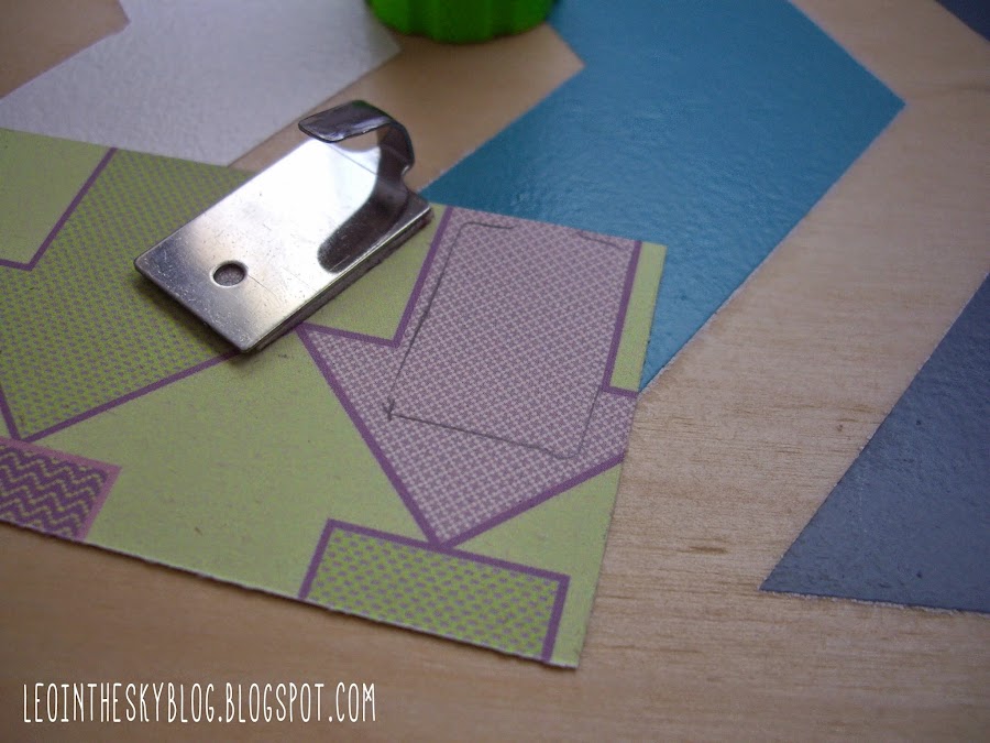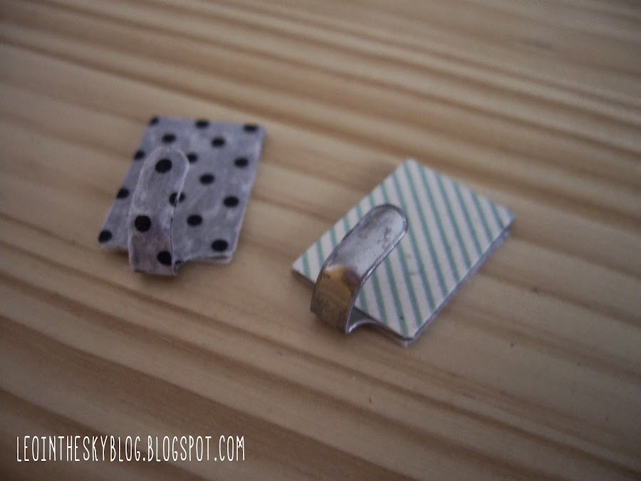 Y para la otra se recorta un poco de papel decorativo (yo usé uno que traía la DIY box) del tamaño de la percha y se pega con cola blanca, con cinta adhesiva de doble cara o con pegamento en barra como hice yo: