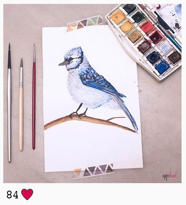 Por último, en el nº5 de este top de Abril encontramos el último dibujo a acuarela que he hecho, el pájaro que completa la colección.
