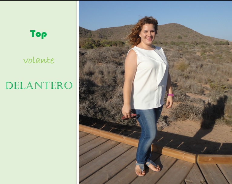 En primer lugar tenéis que sacar un patrón de vuestra medida, una tira que mida igual que el largo de vuestra blusa y un volante como el de la imagen.