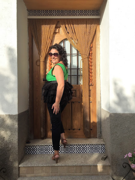 Hoy quiero mostraros el top de la misma tela que el vestido, es un top en verde, con volantes de batista bordada negra y ribeteado el escote en negro también y un lazo en negro. Me gustó el vestido y como mi idea inicial era hacer un top, pues decidí que como tenia tela suficiente haría las dos cosas, el vestido y el top.