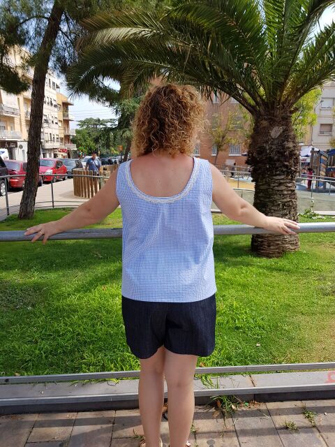 Lo que se lleva este verano el estampado vichy o cuadros vichy y aprovechando este retal que tenia en casa y que hace mucha calor para llevar mangas , he confeccionado este top.