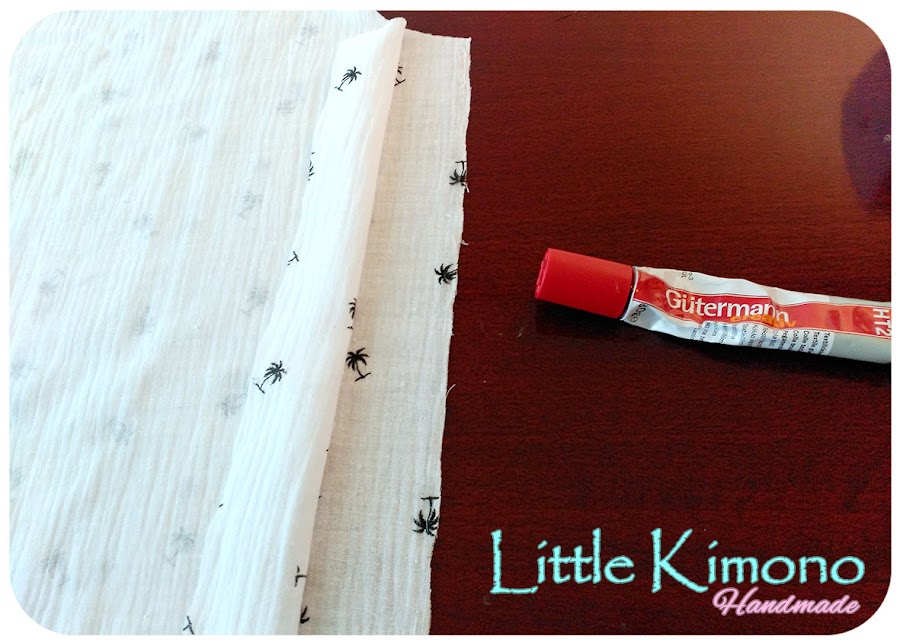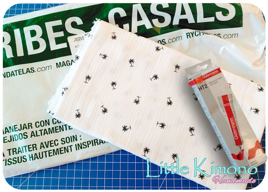 Pegamento Textil HT2 de Gütermann Yo lo usé para la parte de los flecos del "Kimono de verano" y me dio buen resultado, después de lavarlo a 30º se mantiene bien pegado, como os comenté si no os animáis con la máquina de coser, o con las puntadas a mano, este es un proyecto fácil para probarlo ;)