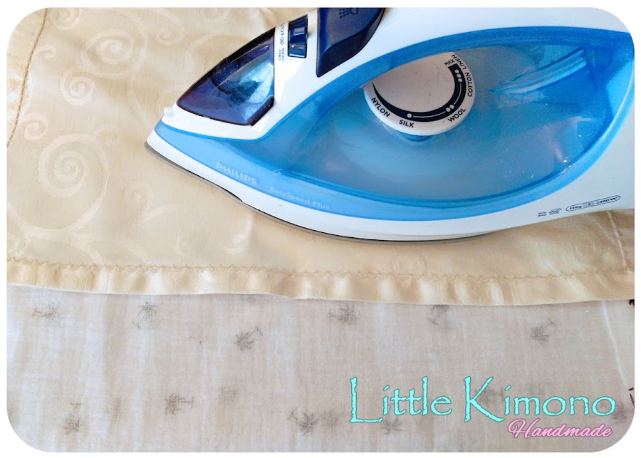 7. Dejamos secar el pegamento unos 5 - 7 minutos y aplicamos calor con la plancha en modo "sin vapor", ponemos un trozo de tela encima y presionando un poco planchamos unos 10 segundos todas las zonas donde aplicamos el pegamento