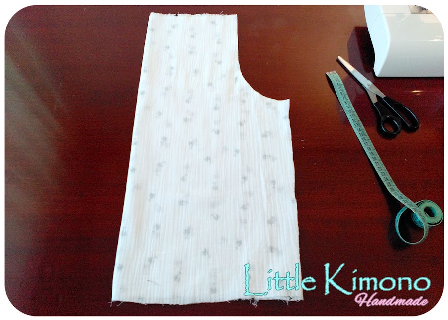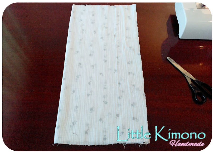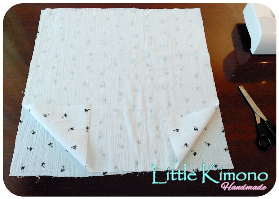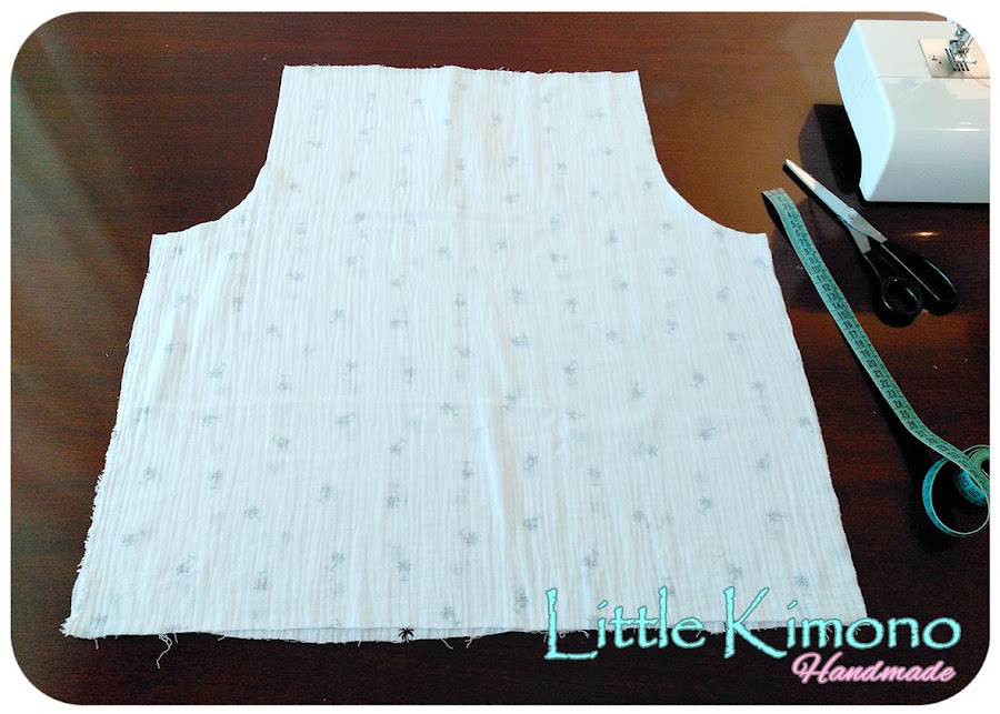 3. Ahora hacemos el truco que os enseñé para hacer el "Kimono de verano", doblamos las telas por la mitad (en vertical) esto nos permitirá sacar las medidas en un sólo lado por ejemplo el derecho y como es simétrico tendremos los dos lados acabados más rápido sin necesidad de volver a medir y cortar el otro lado.