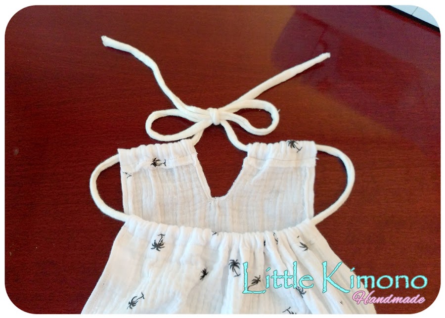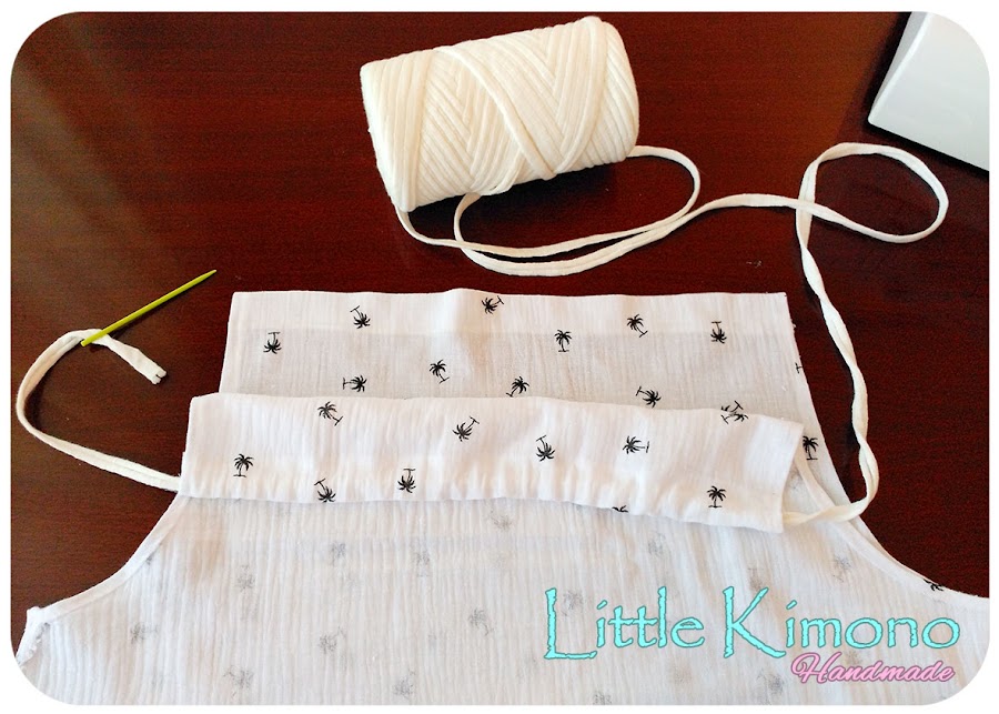 o si sois más tiquismiquis como yo ^^ al final hice un corte en la parte central de la parte trasera (con sus respectivos dobladillos) y saqué por en medio el trapillo para hacer la lazada, de esta manera queda el lazo centrado en la parte trasera.