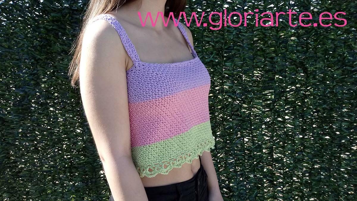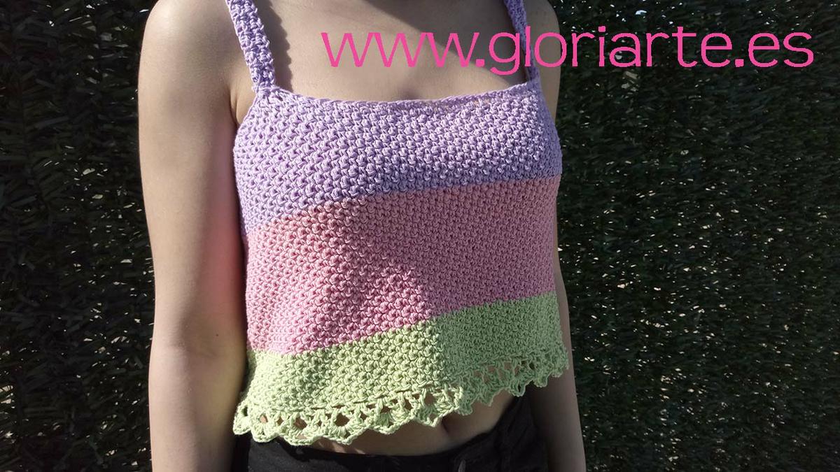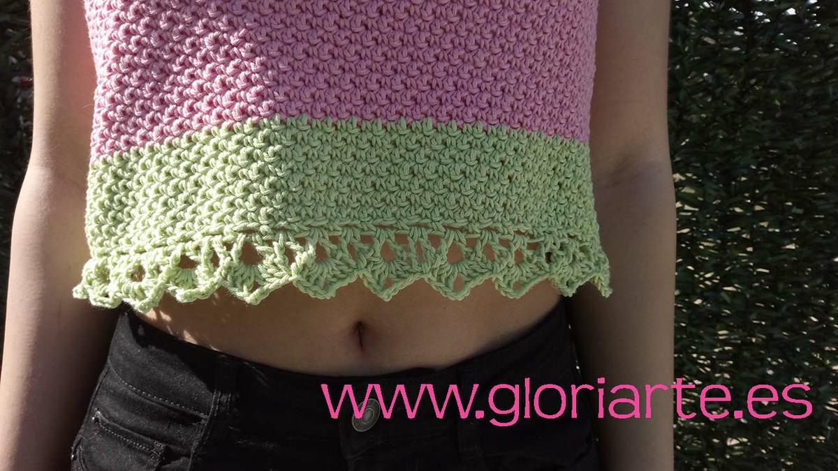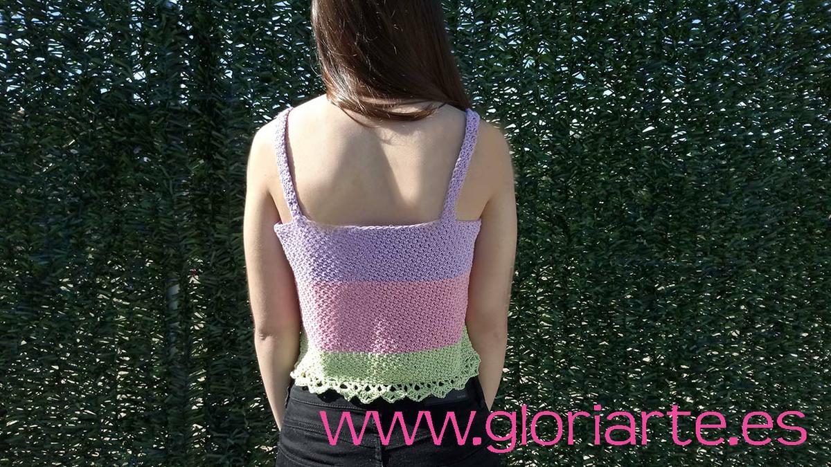 La altura del top es a tu gusto, si quieres que quede más escotado, realiza los tirantes más largos y viceversa. Y después teje tantas vueltas como quieras que quede de largo, si te gusta que luzca por encima del ombligo tendrás que hacer menos vueltas que si quieres que lo cubra y quede por debajo de la cintura.