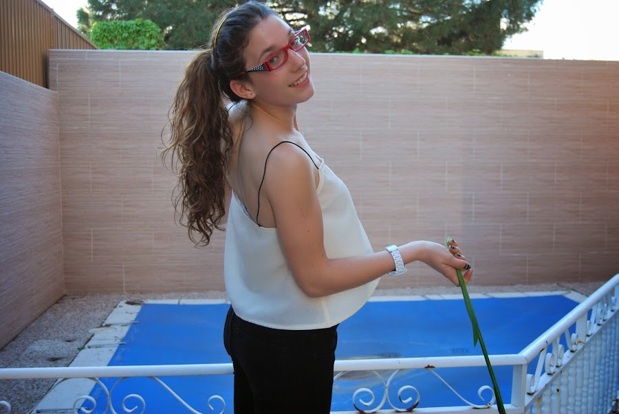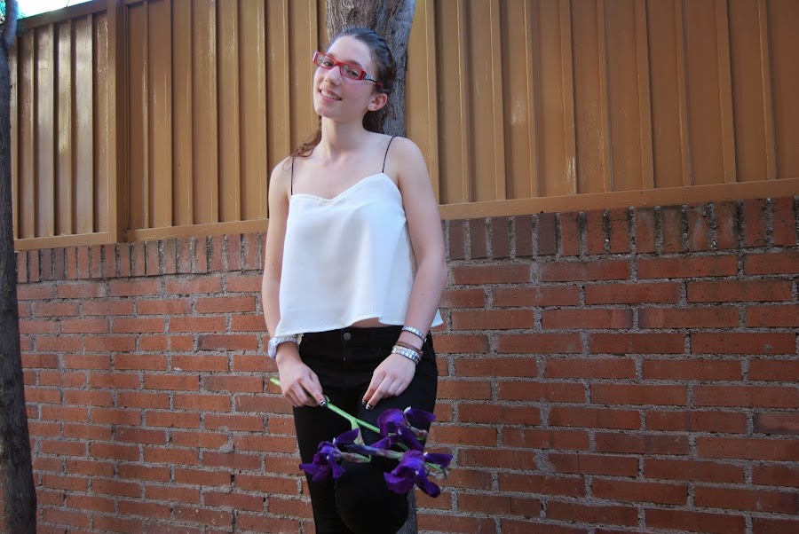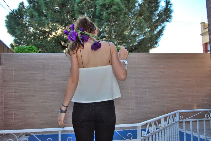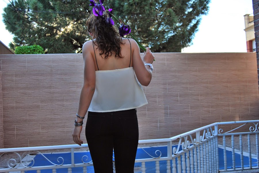 Bueno, hoy os presentamos un top de tirantes negros superfinos en contraste con el color crema del top, pero se pueden poner tirantes espagueti de la misma tela que el top.