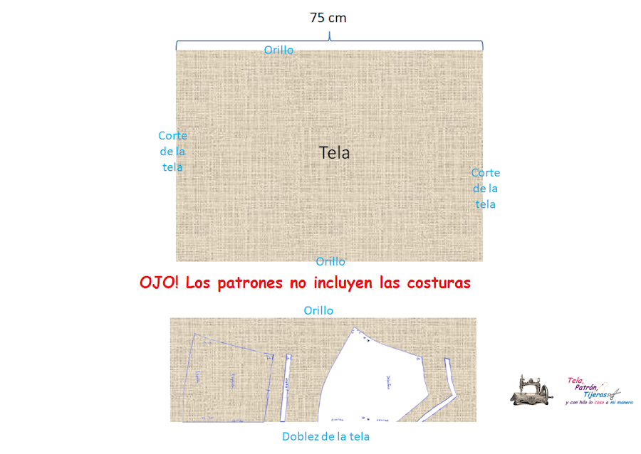 OJO. Los patrones son sin costuras, debemos dejar 1,5 cms. adicionales para costuras.