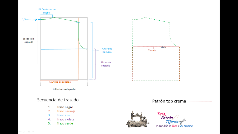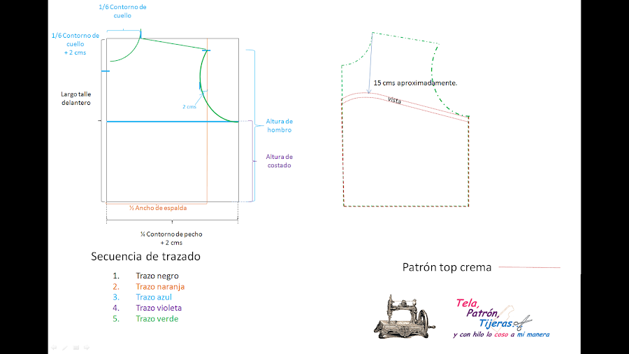 Nuevamente es un top muy fácil de hacer. Nos estamos centrando en cosas super facilitas porque así vamos partiendo desde la base para luego ir evolucionando. Incluimos los patrones para una talla 38, pero también subimos un esquema de como hacer el patrón partiendo de cero.